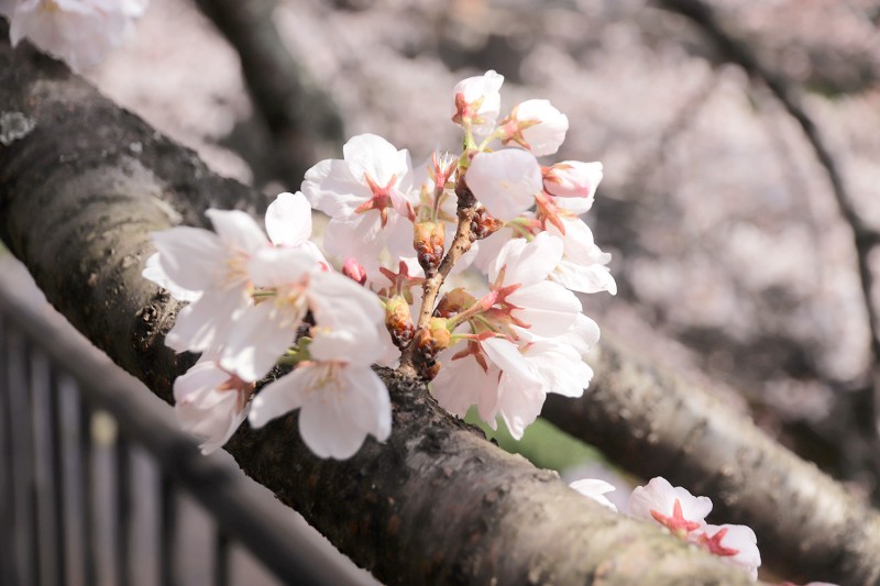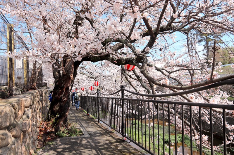 見事な桜のトンネルが広がり、多くの方でにぎわっています。