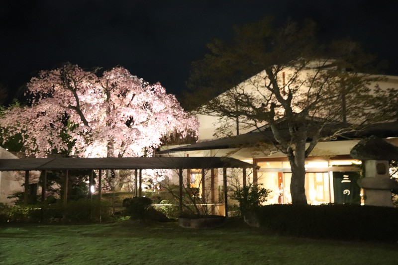 散策ちょうちんもご用意しておりますので、三の湯へ行かれる際や、夜の散策にお出かけになる際は、是非向陽閣の夜桜もご覧になってください。